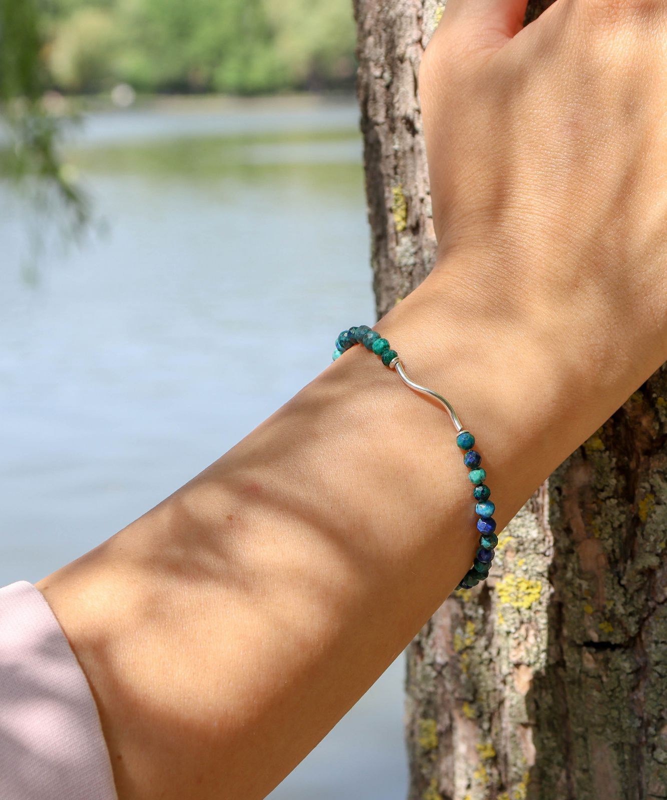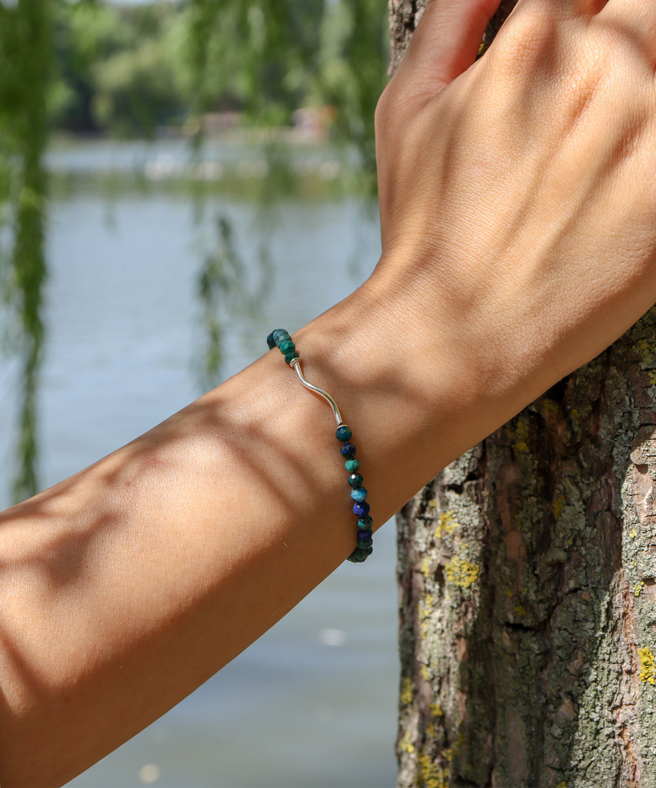 Bratara Azure este realizata din argint cu pietre semipretioase de azurit.