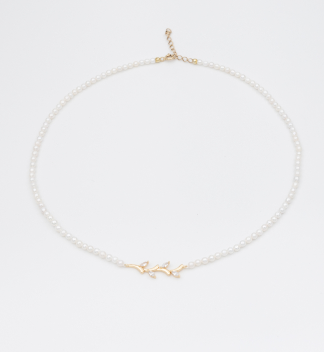 Colier din argint placat cu aur, cu perle naturale si cu pandantiv cu pietre de zirconiu