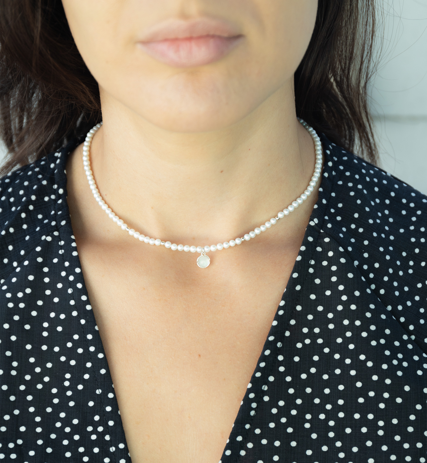 Colier cu perle naturale si pandantiv cu piatra lunii din argint