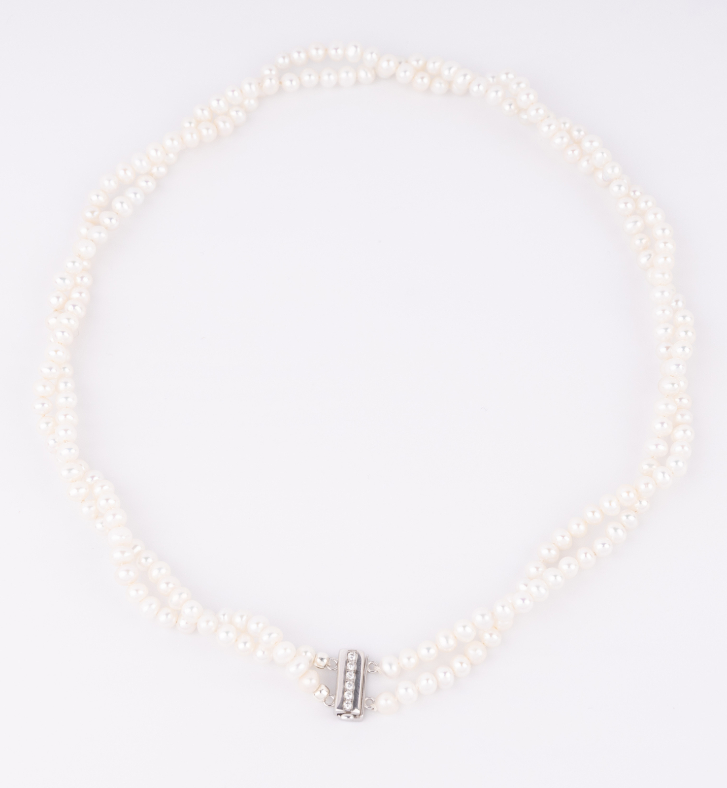 Colier din argint cu zirconiu si cu randuri de perle de cultura.
