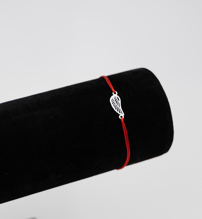 Bratara reglabila cu snur rosu si cu pandantiv din argint in forma de aripa de inger