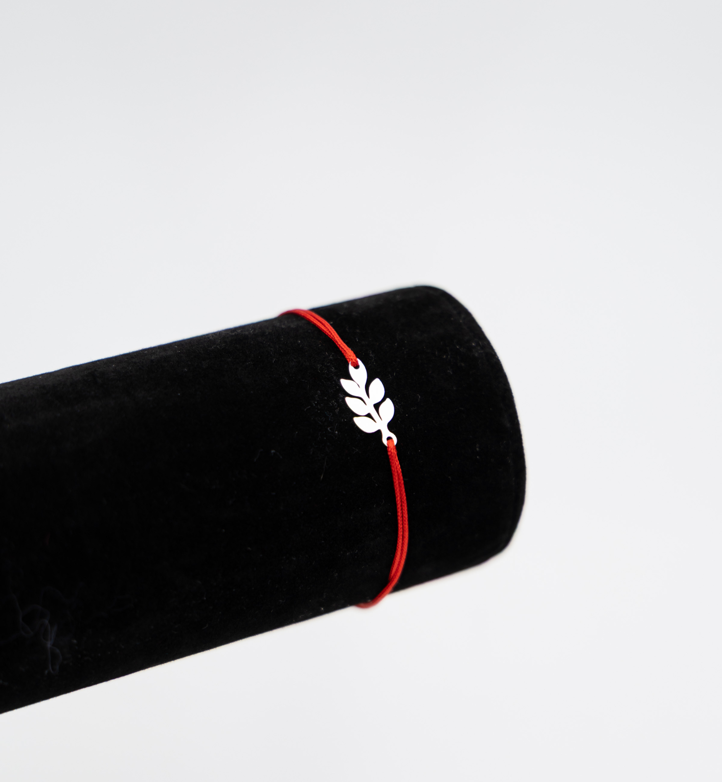 Bratara reglabila cu snur rosu si cu pandantiv din argint forma de frunza