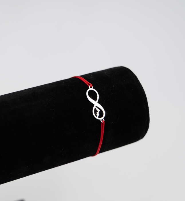 Bratara reglabila cu snur rosu si cu pandantiv din argint forma de infinit cu munte