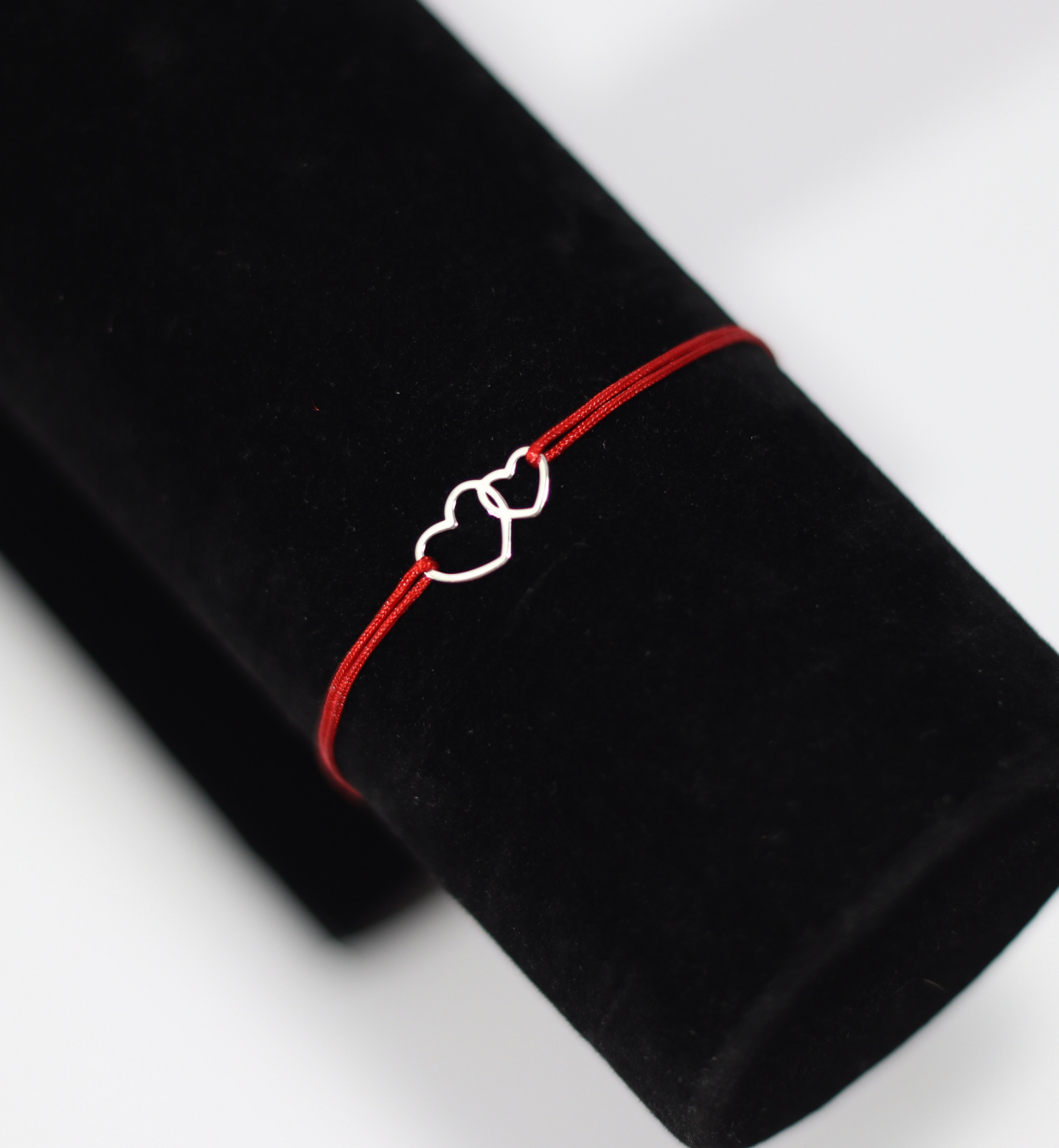 Bratara reglabila cu snur rosu si cu pandantiv din argint  forma de inimioare