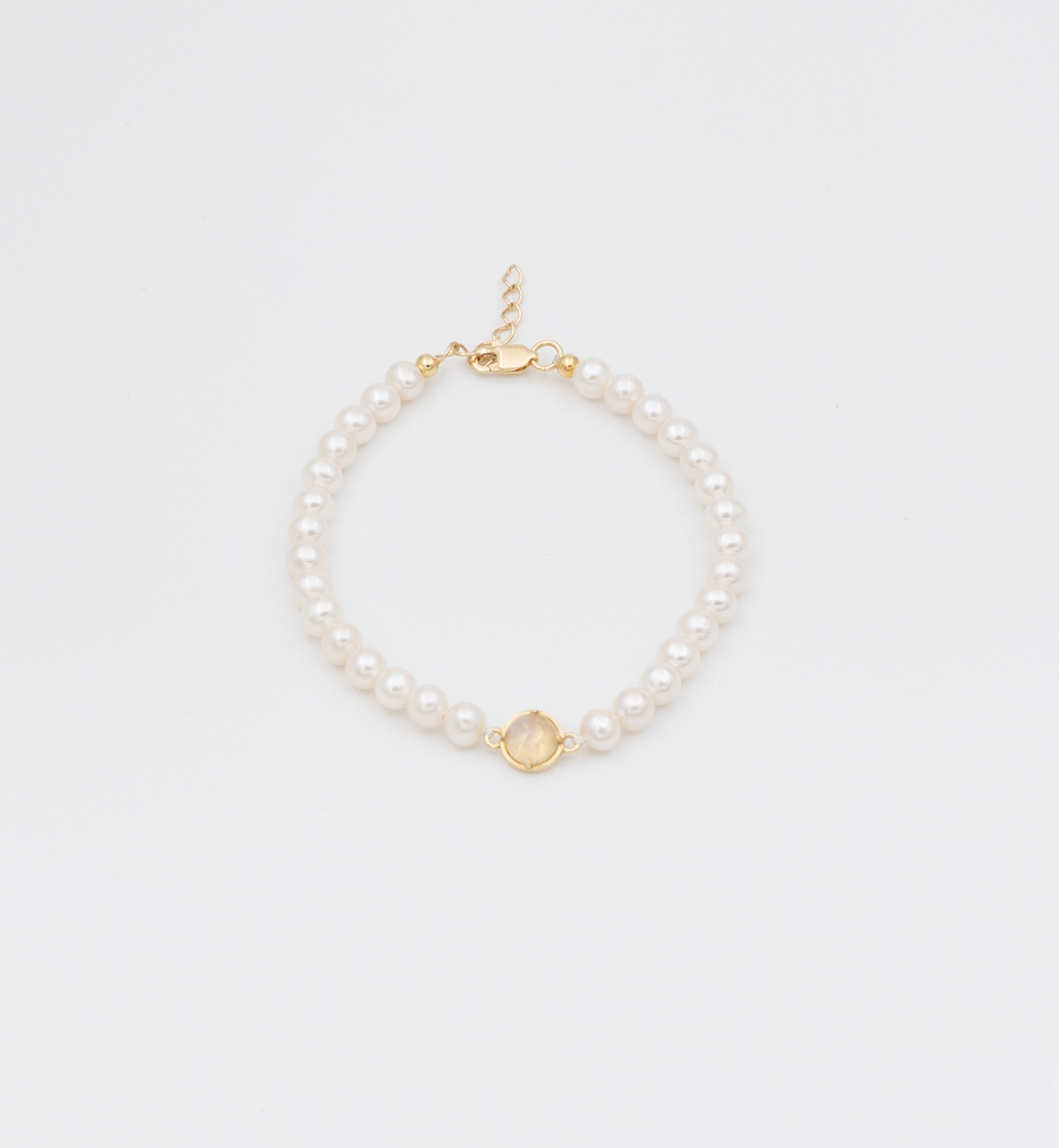 Bratara din argint placat cu aur, perle naturale si pandantiv conector cu piatra lunii